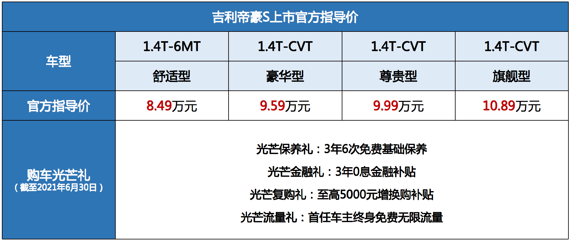 官方指导价8.49万-10.89万元,吉利帝豪S正式上市