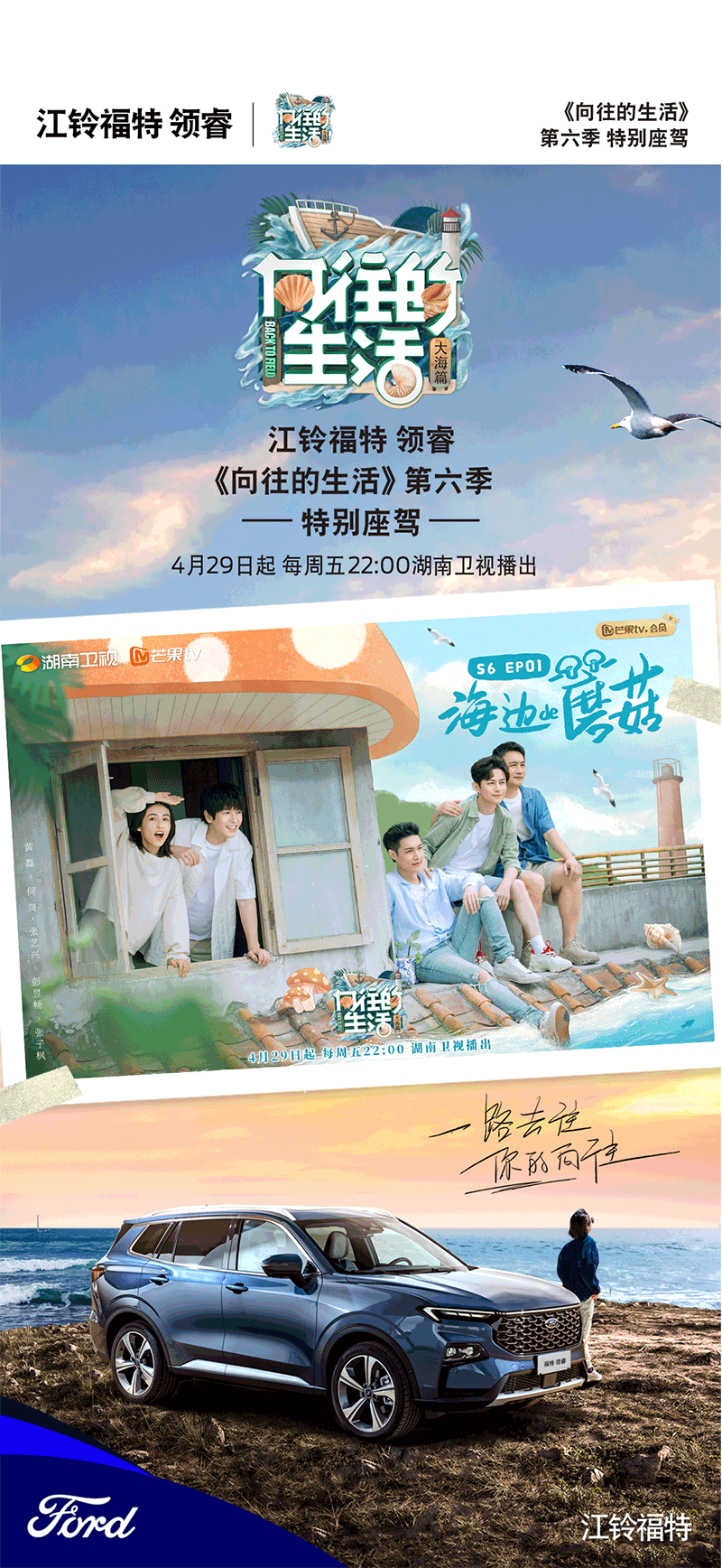 宽体高能先锋SUV江铃福特领睿宣布成为《向往的生活》第六季特别座驾,实力担当明星接送、物资运输、日常出游、采购采风等出行伙伴,携手节目组共启海岛式田园牧歌。
