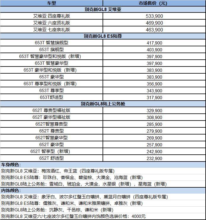 2022年8月19日,上汽通用汽车别克品牌宣布别克GL8家族全面焕新上市,共推出包括GL8艾维亚、GL8 ES陆尊及GL8陆上公务舱三大系列20款车型,售价23.29万元-53.39万元,其中包括新增三款新GL8 ES 陆尊和悦版车型和一款新GL8 陆上公务舱智享型。别克新GL8家族采用全新前脸设计,以进一步升级的豪华品质及舒享体验,满足用户多样化、全场景用车需求,实力印证“有家、有业、有GL8”。即日起,新车将陆续到店并上市销售,指定车型还可享受至高15,000元购置税减免。