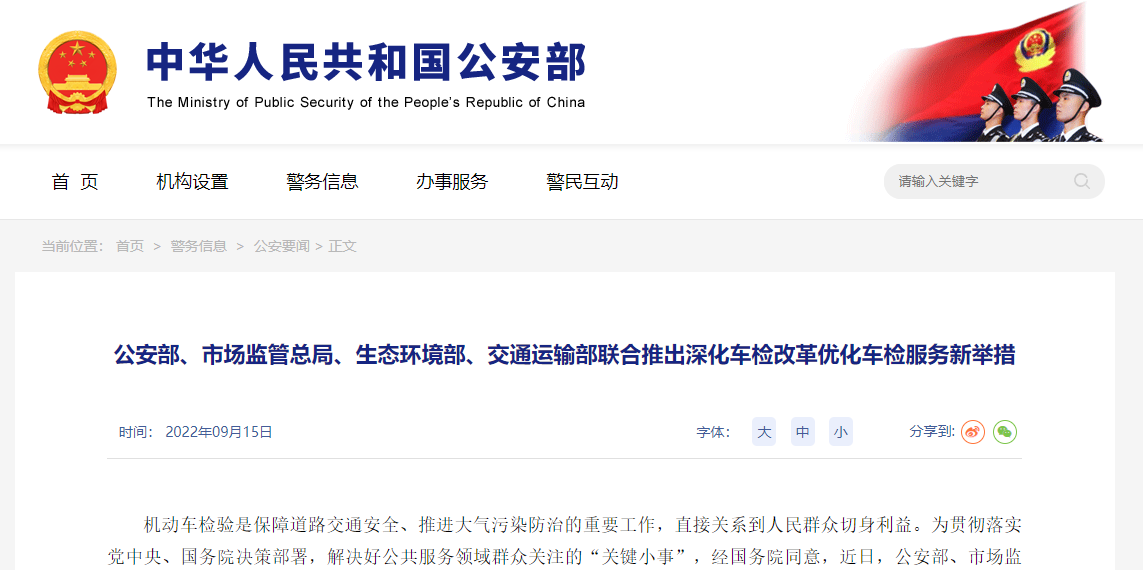 机动车检验是保障道路交通安全、推进大气污染防治的重要工作,直接关系到人民群众切身利益。为贯彻落实党中央、国务院决策部署,解决好公共服务领域群众关注的“关键小事”,经国务院同意,近日,公安部、市场监管总局、生态环境部、交通运输部联合印发《关于深化机动车检验制度改革优化车检服务工作的意见》(以下简称《意见》),部署深化车检制度改革。